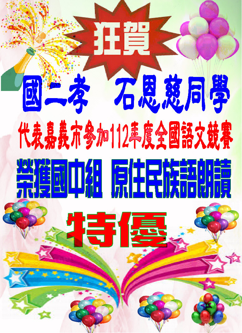 恭賀宏仁中學參加112年全國語文競賽,榮獲國中組原住民族語朗讀特優!