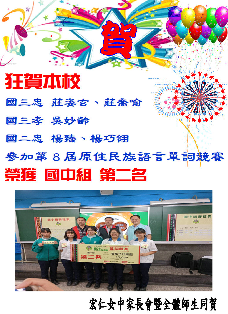 恭賀本校國中部參加第8屆原住族言單詞競賽,榮獲第二名