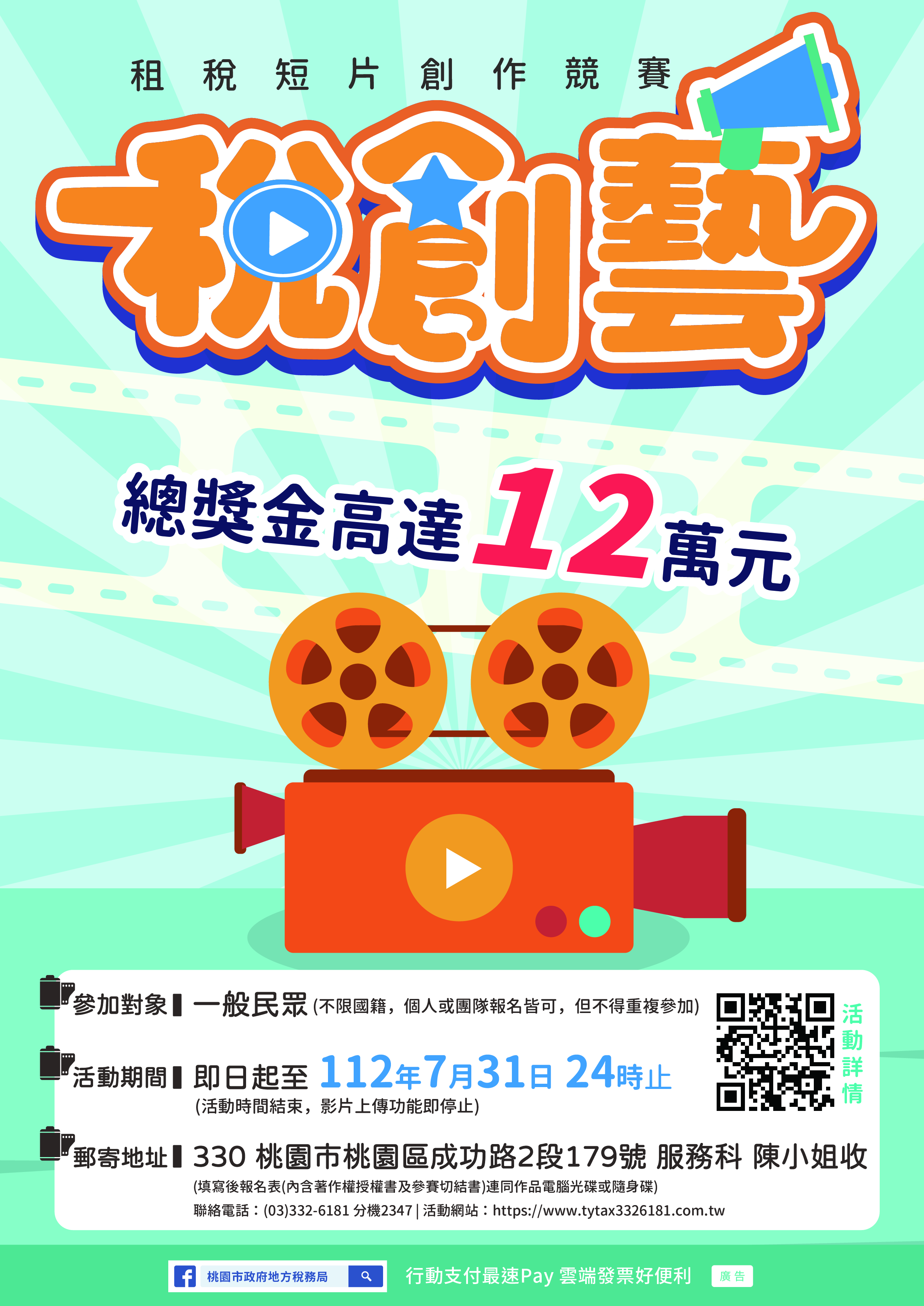 主旨:檢送本局舉辦112年「稅創藝」租稅短片(微電影、動畫)創作競賽海報(中、英文版)及活動辦法各1份,請協助於貴校網站公告活動訊息宣導,請查照。