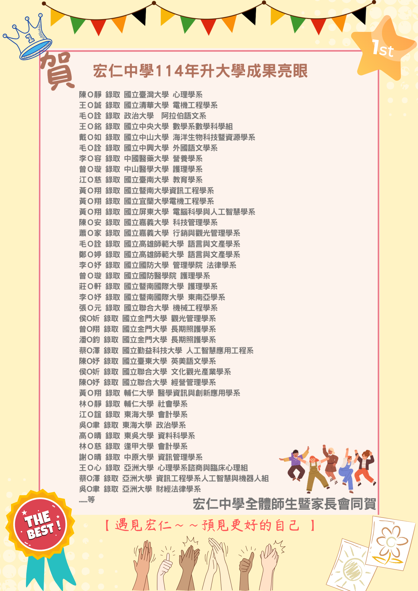 宏仁中學教育儲蓄戶 戶名:宏仁學校財團法人嘉義市宏仁高級中等學校教育儲蓄戶