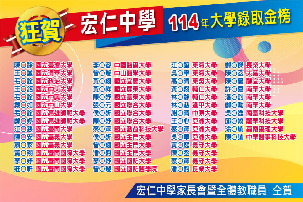 Copyright © 2026 天主教宏仁高級中學 網頁設計:宇迅科技