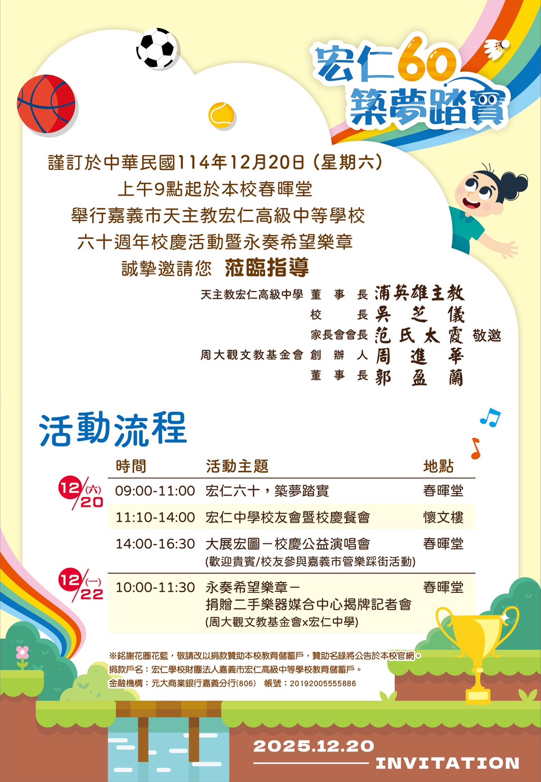 Copyright © 2026 天主教宏仁高級中學 網頁設計:宇迅科技