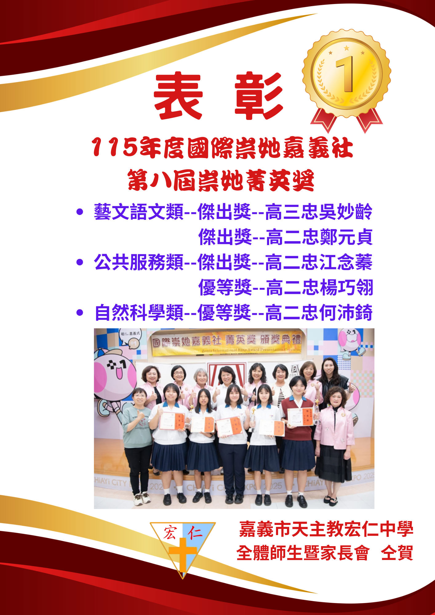 勇媽阿惠 - 黃敏惠市長更是【宏仁中學校友會】現任理事長!郁惠副理事長和理事們熱愛宏仁、提攜關照宏仁學子的心情,溢於言表!相信孩子們都深切感受到了!宏仁的榮耀和精神一定會代代傳承下去!